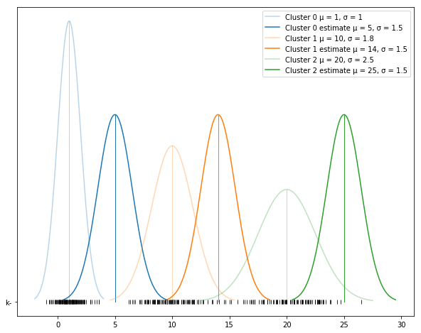 print("Cluster {}: mean {}, sigma {}".format(i,m,s))